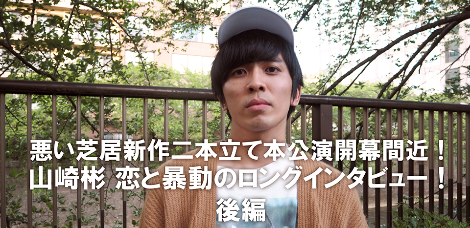 どっちから見て欲しいかって聞かれると、一応悪い芝居の本公演には通しナンバーがついていて、vol.22が『野性の恋』、vol.23が『暴動のあと、さみしいポップニューワールド』なので、一応順番通り見てもらうほうが面白いつもりでは書いています。まぁでも、逆は逆で、僕らの本当のかっこよさが知れるみたいな良さもあると思うかなあ。なのでどっちから見てもそれぞれ楽しみはありますが、人生は一度切りなので、どっちかから観るっていう経験しかできないので、そこは観る人のセンスによるから、それはもうご自由にどうぞって感じです。前編のインタビューでも答えましたけど、とにかく同じセットと言えどちょっとした仕掛けはあって、本当に違う世界に見えると思います。今日やってた芝居は明日やってなくて、もうひとつがやられてるんだなーって思うことも含めて楽しめるんじゃないかなと。なかなか二本同時にやる機会っていうのは僕らもこの先今のところ決まっている予定では無いですし、お客さんとしても観てもらえることはないと思います。なので今回の機会を逃さずに、ちょっと悪い芝居から離れてる人とか、悪い芝居観たことないけどどんなんなんだろうと思ってる人とかにはうってつけの公演になっています。チケット代的にも二本見た方がお得ですし、だったら二本とも観るっきゃないってことで、僕らも頑張るんでよろしくお願いします。
