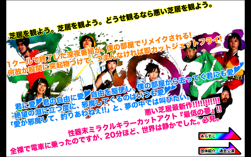 おまけ 出演 会場・地図 公演情報 作品紹介 チケット 現状報告 メディア情報